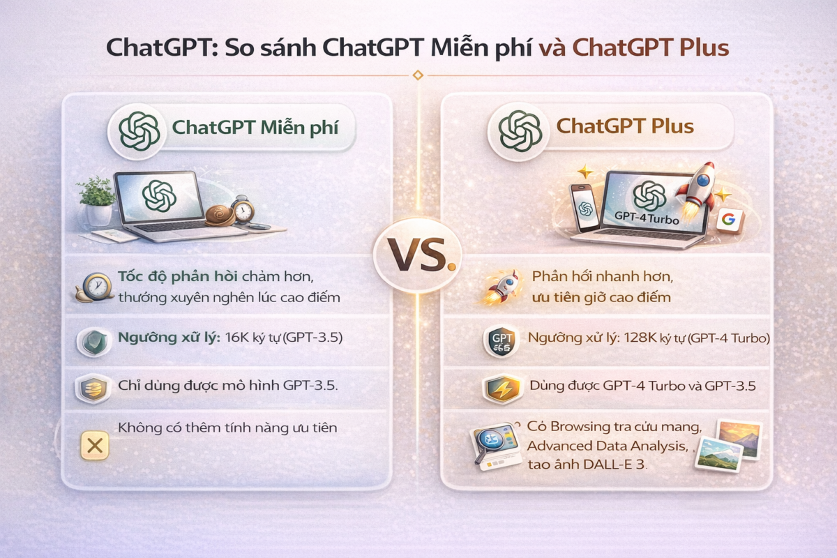 Trong bối cảnh trí tuệ nhân tạo phát triển không ngừng, việc lựa chọn giữa phiên bản ChatGPT Miễn phí và ChatGPT Plus/Pro trở thành câu hỏi đau đầu với nhiều người dùng. Liệu việc nâng cấp lên các model như GPT-5 hay o1 (Thinking mode) có thực sự đáng tiền? Bài viết này sẽ phân tích chi tiết dựa trên các tính năng thực tế.