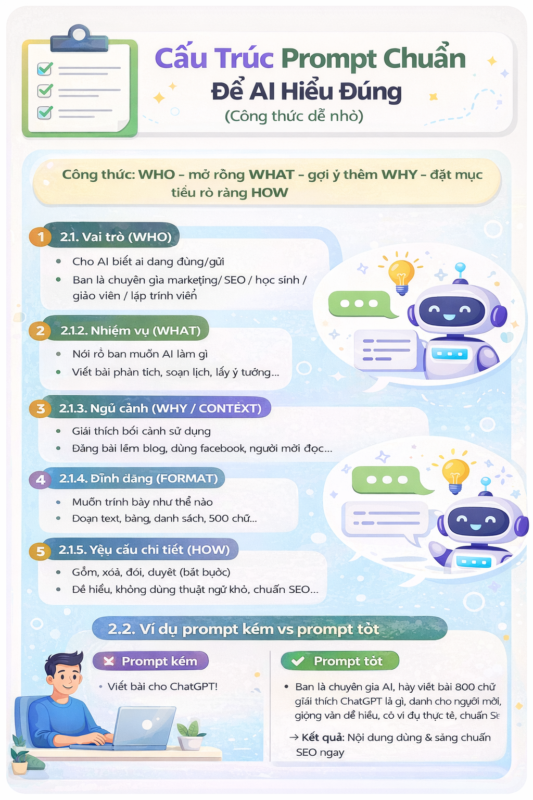 2.1 Cấu trúc 1 prompt chuẩn để AI hiểu đúng (Công thức dễ nhớ)