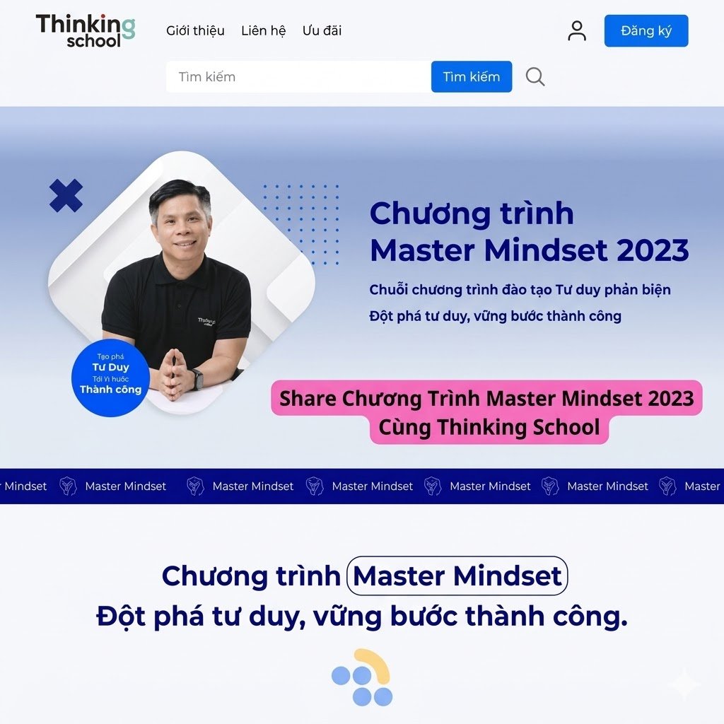 Chương Trình Master Mindset 2023 cùng Thinking School là lựa chọn phù hợp dành cho những ai muốn thay đổi từ gốc rễ thông qua việc rèn luyện tư duy, nâng cao nhận thức và xây dựng nền tảng phát triển bản thân bền vững hơn.