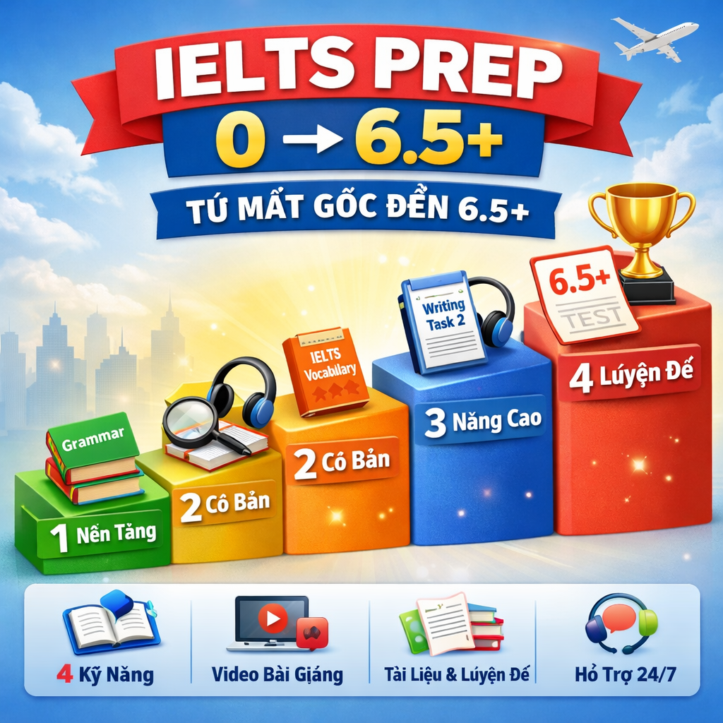 📚 LỘ TRÌNH HỌC IELTS PREP 0 → 6.5+
