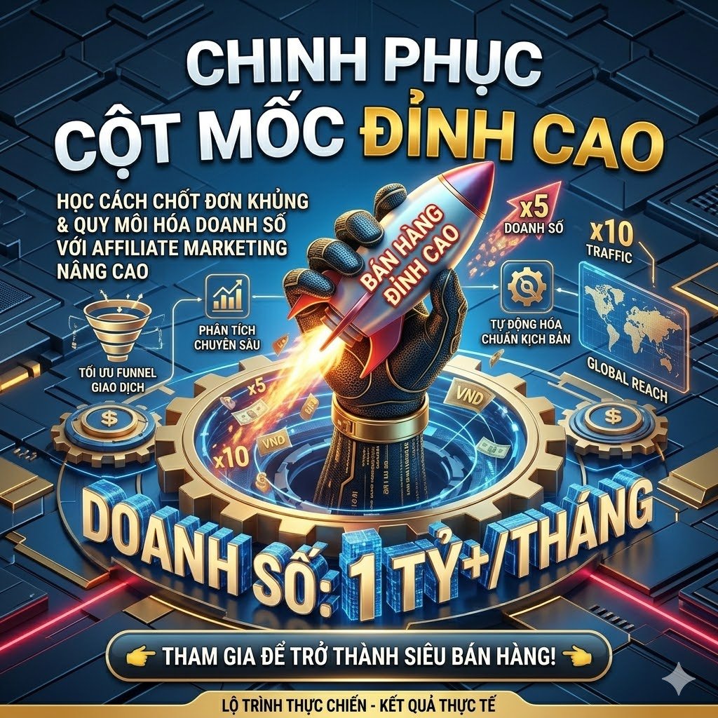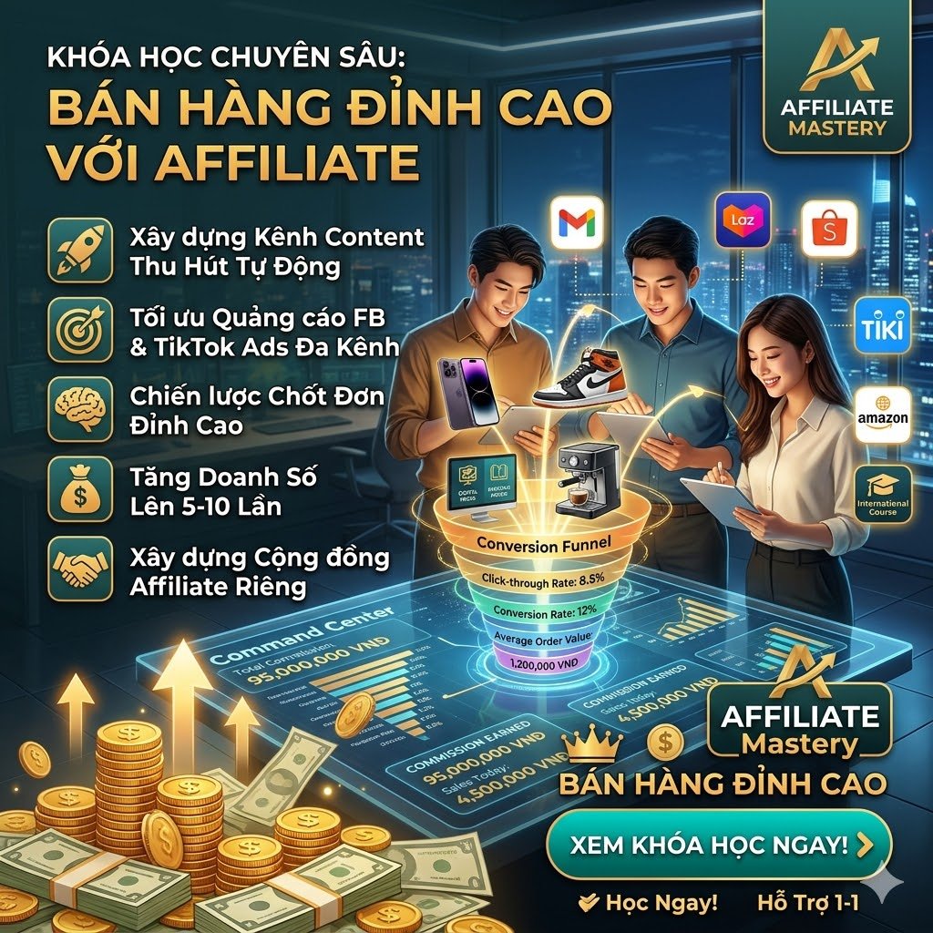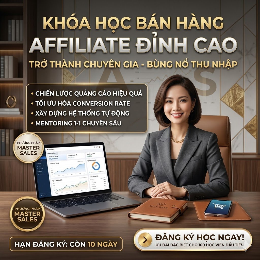 Khóa học giúp bạn làm chủ kỹ năng bán hàng với Affiliate, tăng chuyển đổi, xây dựng hệ thống kiếm tiền online và scale thu nhập bền vững.