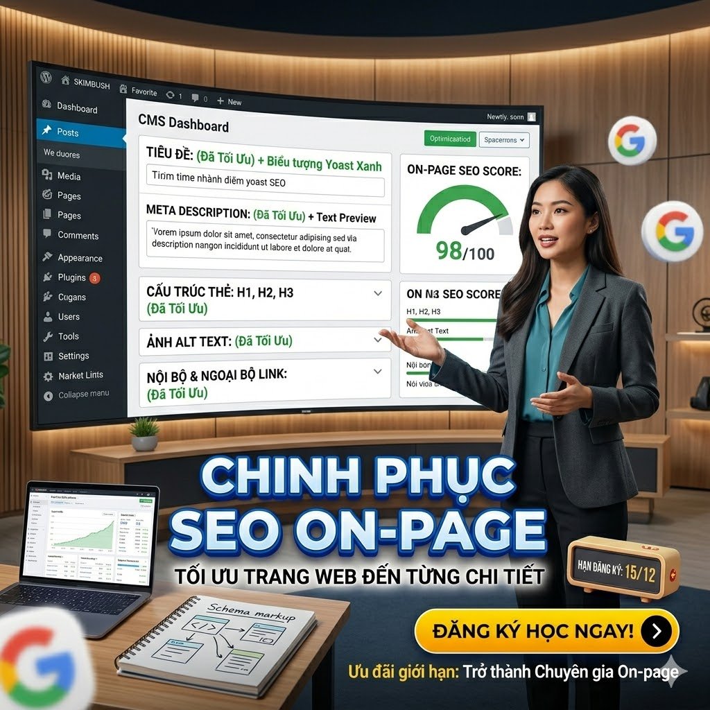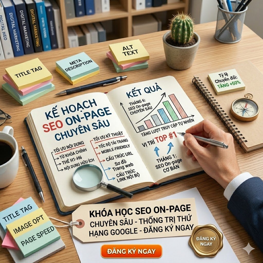 Bạn đã có website nhưng không biết tối ưu thế nào để lên top Google? Khóa học SEO Onpage sẽ giúp bạn hiểu rõ cách tối ưu toàn bộ nội dung và cấu trúc website để cải thiện thứ hạng một cách nhanh và bền vững.