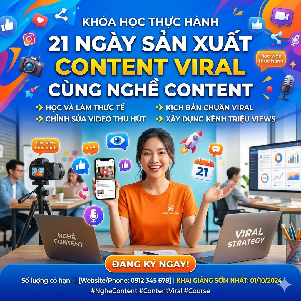 Khóa Học Thực Hành 21 Ngày Sản Xuất Content Viral cùng Nghề Content là lựa chọn phù hợp dành cho những ai muốn xây nền tảng làm nội dung một cách bài bản, thực tế và dễ áp dụng.