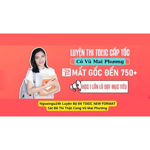 Khóa học Ngoại Ngữ 24h Luyện Bộ Đề TOEIC New Format Sát Đề Thi Thật Cùng Vũ Mai Phương tại Ngoại Ngữ 24h sẽ giúp bạn luyện tập đúng trọng tâm, bám sát cấu trúc đề thi thật, tối ưu chiến lược làm bài và tăng điểm nhanh chóng.